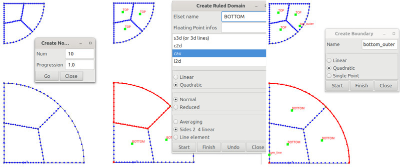 For each liset, choose Quadratic \(\longrightarrow\) Start, then select the curves that form the boundary set \(\longrightarrow\) Finish.