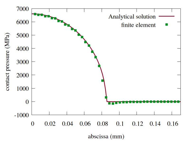 Fig. 80 Comparison of contact pressure results from finite element analysis and analytical solution.#