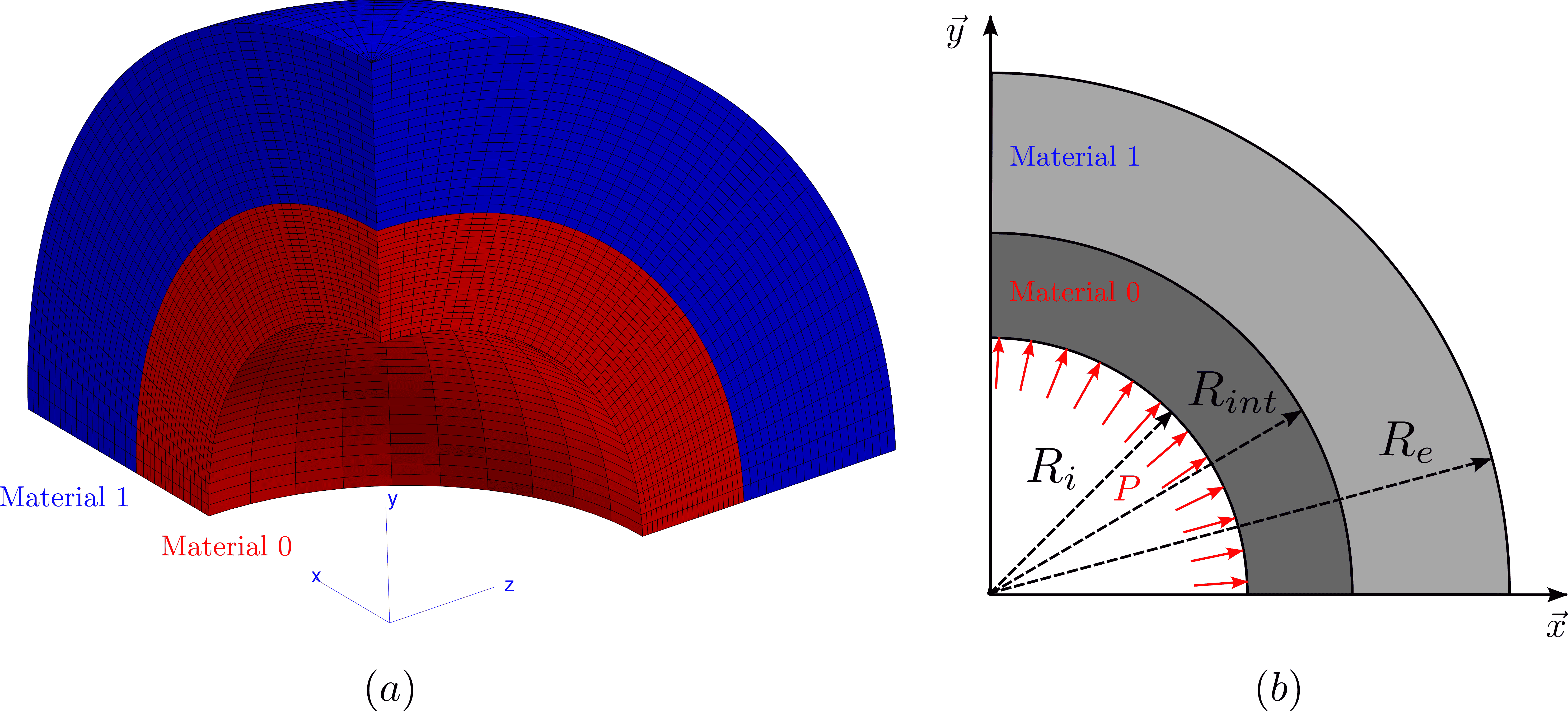 Fig. 42 One eighth of the bi-material sphere (a) sphere’s cross-section (b)#