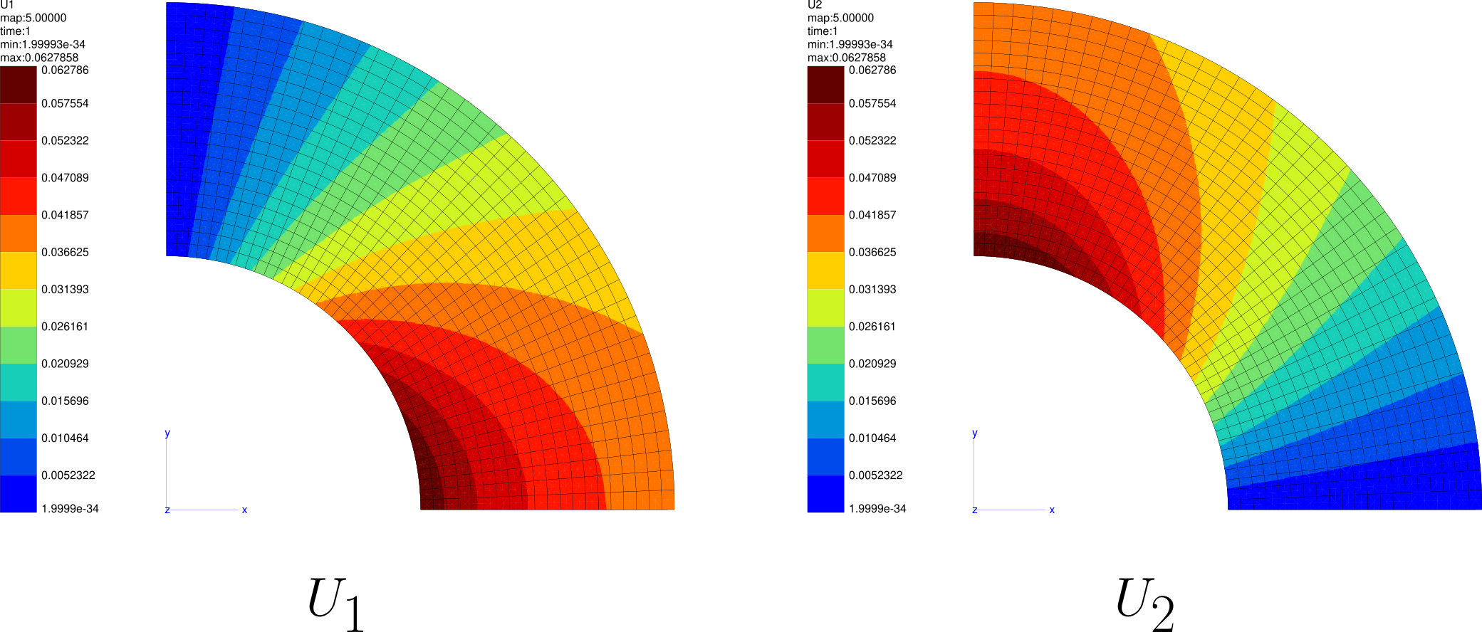 (for example, 20 for both opposite lines and 40 for both opposite arcs).Before meshing the quarter of the disk, you must choose the desired mesh type: structured or free.