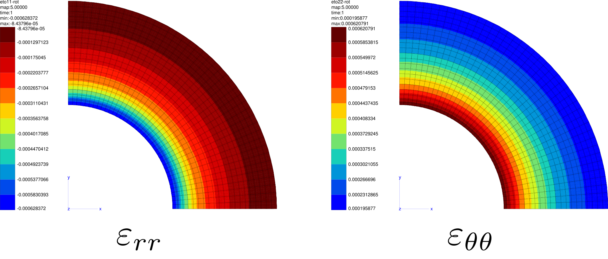 Compute the strain/stress components at the cylindrical coordinates
