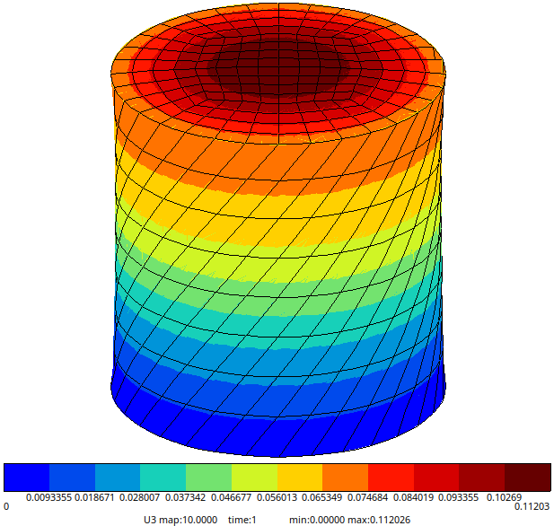 Fig. 62 The displacement \(U_3\) for an Rivlin hyperelastic model (\(\alpha=0.5\)).#