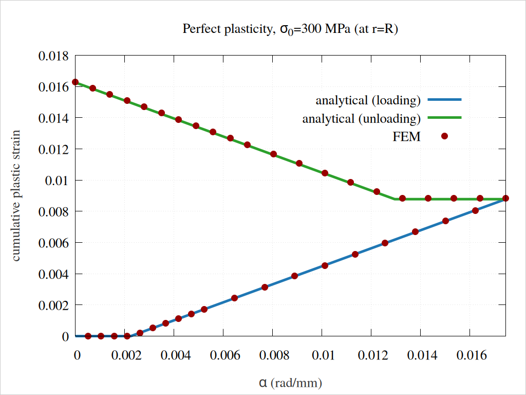 For brevity, we consider a perfect plastic model with \(\sigma_0=300\) MPa. The same analysis